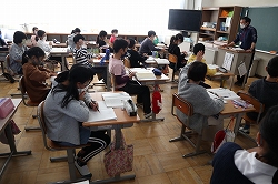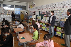 その後、図書室においてこれまでの児童の様子をスライドでみていただきました。