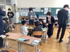 11月12日から14日までの3日間、職場体験で2名の明治中学生が来校しました。初日に、オンラインで児童にあいさつをしました。主に、5年生と2年生の教室に入って活動体験をしてもらいましたが、学級の児童も嬉しそうでした。