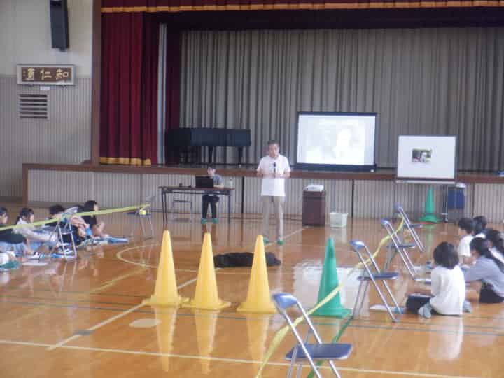 福祉への理解を深めることを目的として、5年生で「補助犬(盲導犬)福祉講座」を行いました。上三川町社会福祉協議会のご協力のもと、講師として、NPO法人栃木県補助犬協会の皆様をお迎えし、盲導犬の役割や育成の過程などについて、わかりやすくご講話いただきました。子どもたちは、講師の方の話に真剣な表情で耳を傾けていました。また、盲導犬とのふれあいの時間もあり、命の大切さや思いやりの心について考える貴重な機会となりました。