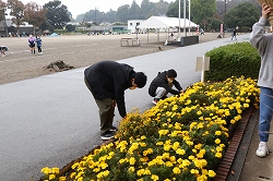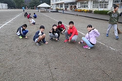 児童は朝のボランティア活動で、校庭の草むしり、落ち葉掃き、石拾いなどをして、明日の運動会に向けて進んで活動していました。