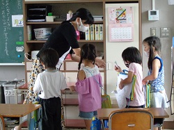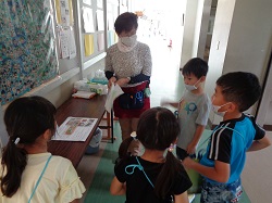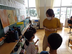 また、学校の教室の位置や中の様子、先生たちの顔と名前や好きな動物など、クイズに答えたり質問をしたりしながら楽しく学習できました。