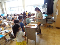 グループごとに校内の地図を持って移動し、各教室を回りました。