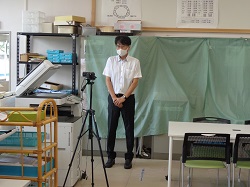 職員室で校長先生から賞状をもらう様子をテレビ放送しました。