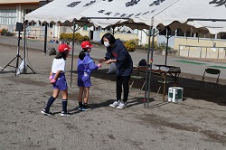 また、徒競走では、当日を想定して、スタート時に雷管を使ったスターターピストルの音になれる練習や、ゴールした後、賞状をもらう練習もしました。