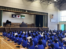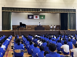 体育館に生徒たちが一堂に会し、第1学期終業式を実施しました。