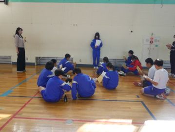 埋蔵文化財センターの職員の方にご来校いただき、勾玉作りをしました。