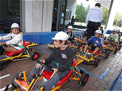 ホンダコレクションホールでは、クイズの答えを見つけながら自動車やバイクの展示を見たり、電動カートのタイヤ交換体験をして走行の違いを学習したりしました。