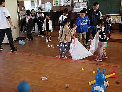 たてわり班ごとに協力してゲームをクリアすると、歓声が上がるなど、とても