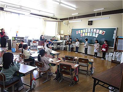 1~3年生は、図書ボランティアの方による読み聞かせがありました。