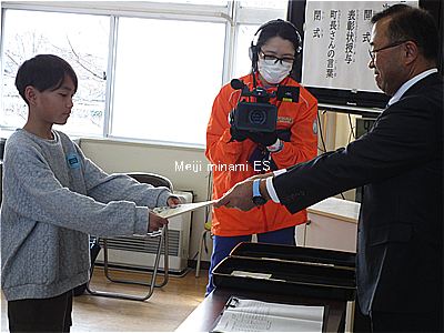 6年生が、上三川町の星野 光利町長から表彰状をいただきました。