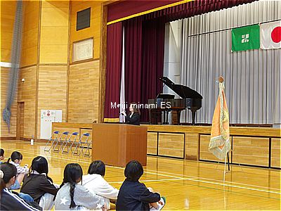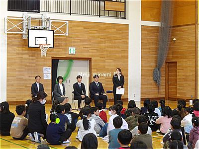 始業式では、校長先生から、「今日の気持ちを大切に、1年間楽しく生活していきましょう」「いろいろなことにチャレンジしましょう」と、お話がありました。