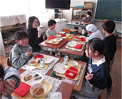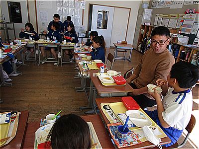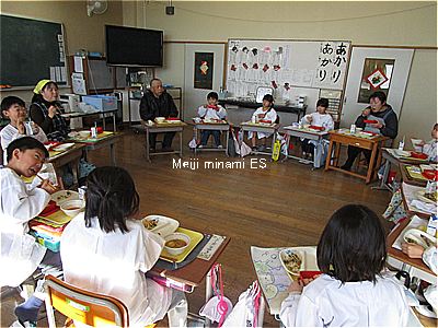 一緒に食事をしながら、給食や食材の話などをして盛り上がりました。