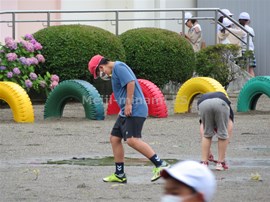 梅雨でなかなか外で遊べない日々です。今日は,なんとか外で遊べました。しかし,湿度が高く,まるでプールに入っているようでした。