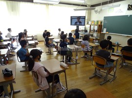 業間に,リモート始業式と表彰を行いました。