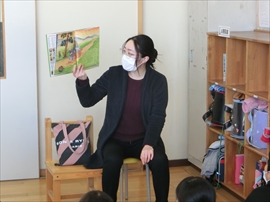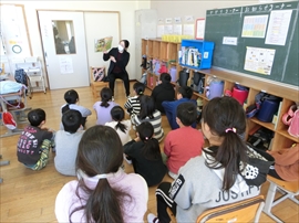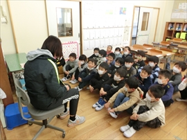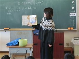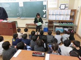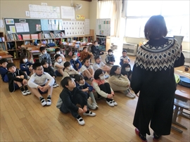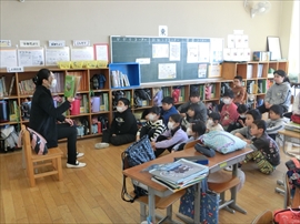 朝の活動の時間に,1~3年生が,図書ボラによる読み聞かせを行いました。