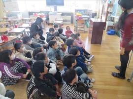 1~3年生で,図書ボラによる朝の読み聞かせを行いました。