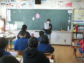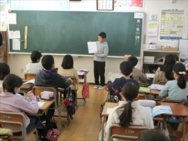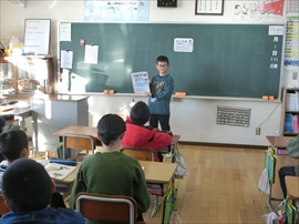 朝の活動に時間に,4・5年生の運営委員が,次回のミニ南っ子会議のアジェンダを説明しました。各活動も移行期に入り,5年生中心に活動していく場面が増えていきます。