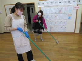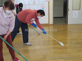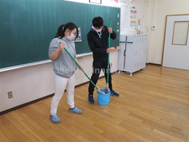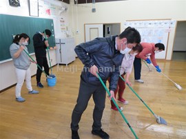 職員で,教室のワックスがけを行いました。