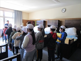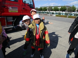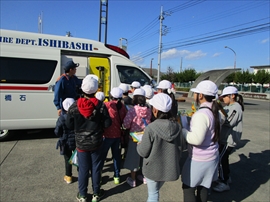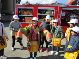 3年生が,社会科見学で,「安全な暮らしを支えている人たち」で火事を防ぐ人たちについて学習するために,石橋地区消防組合本部に行きました。指令室などを見学したり,救急車や消防車の見学,消防服の体験をしました。