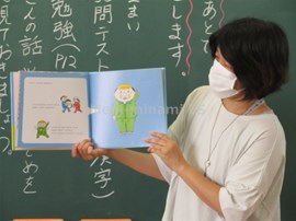 図書ボランティアによる朝の読み聞かせを行いました。