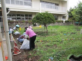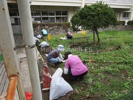 学校応援団が,ビオトープの除草を行いました。