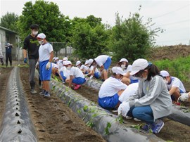 石﨑さん指導の下,全員で苗を植えました。
