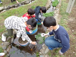 昨日ホタルプロジェクトで,育てていたホタルをビオトープに放流しました。また,3年生から2年生へ引継ぎをしました。