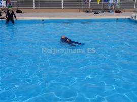 1年生が,着衣泳を実施しました。他の学年についても,随時実施していきます。
