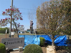 今年度も,上野さんがボランティアで,樹木の剪定をしていただいています。