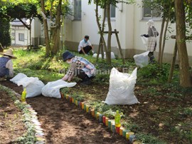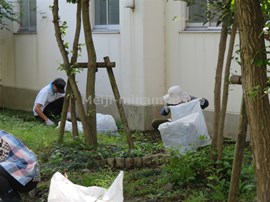 学校応援団の方々と,ビオトープの除草を行いました。