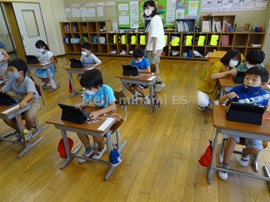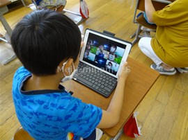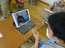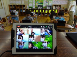 1年生が,iPadでZoomの体験を行いました。狂喜乱舞していました。