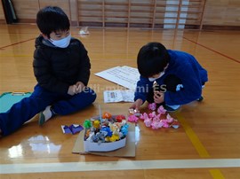 2年生が1年生を招待して,おもちゃフェスティバルを開きました。