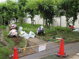 共同実施とは,人手のいる作業を,他校の公仕数名に参加していただき,複数で作業を行う事業です。