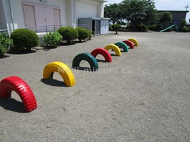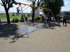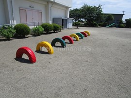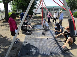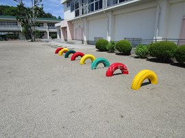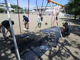 職員で,タイヤの塗装と,ぶらんこ下のゴムマットの設置を行いました。