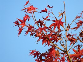 学校のモミジも,色づいてきました。