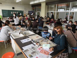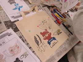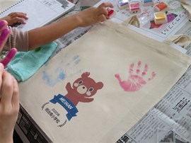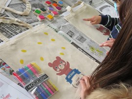 エコバッグの絵付け作業をしています。