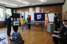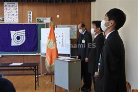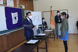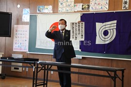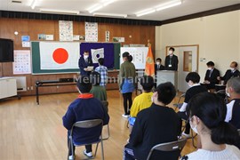 6年児童表彰式を行いました。町長から6年生へ,お言葉をいただきました。