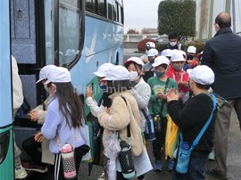 3年生が,むかしの暮らしをテーマに,県立博物館へ見学に出発しました。