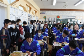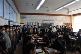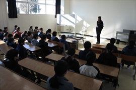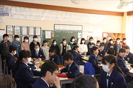 6年生が,明治中学校に訪問しました。授業参観をしたり,本校卒業生から明治中学校の学習や生活について話を聞いたりしました。6年生は,不安を感じながらも,4月からの中学校生活を楽しみにしているようでした。
