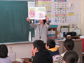 3校時,保健学習で「たばこと健康(たばこの害)」について,子ども家庭課保健師3名の話を聞き,たばこを勧められたときの断り方を,ロールプレイしました。