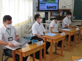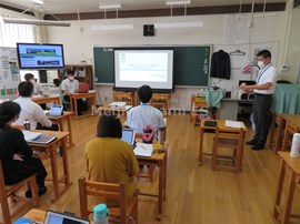 放課後,県や町から講師の先生をお招きして,プログラミング教育研修を行いました。本園度から導入ということで,各先生が試行錯誤している中,目的や考え方,事例など,今後取り組んでいくための指針を享受していただきました。