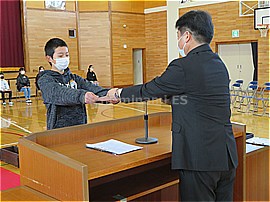 上三川町,PTAからの卒業記念品の授与と,表彰を行いました。