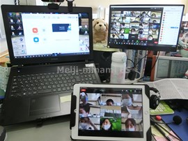 今週と来週,各学年1時間ずつ,休業になったときやこれからのITでの授業に備えて,Zoomの使い方を講習しました。