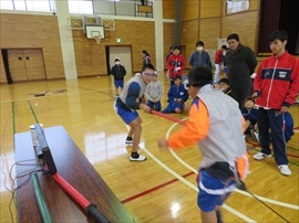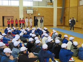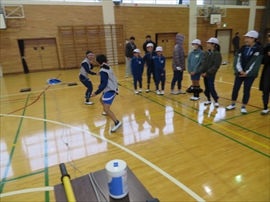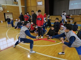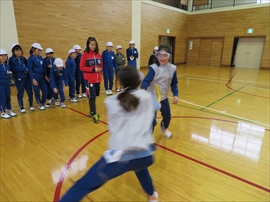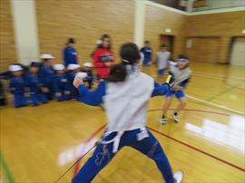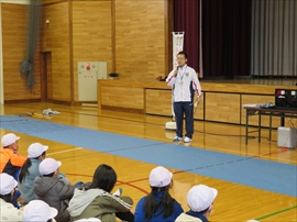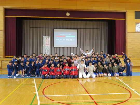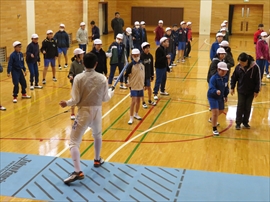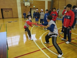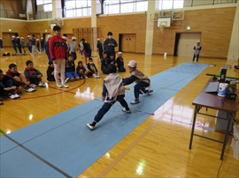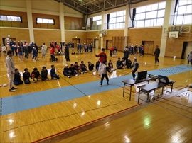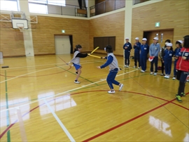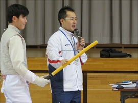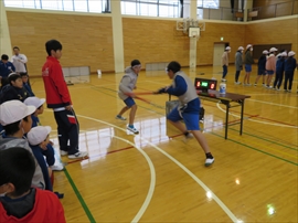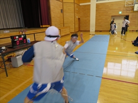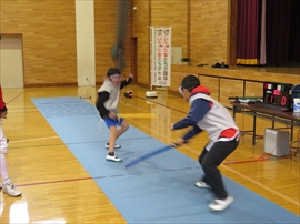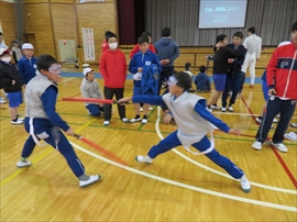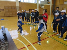 5・6校時,4~6年生の体育で,フェンシングの体験学習をしました。役場職員の方と宇都宮南高等学校フェンシング部の先生,部員の指導で,フェンシングの競技についての解説と,実際に使うジャケットやワイヤーなど使用して実技(フルーレの有効面で得点はエペで対戦)を行いました。剣こそ,安全性に配慮された簡易的なものでしたが(とは言っても手作りで電極も仕込まれていて,審判器で判定できます),動きやゲーム性については本物そのものでした。はじめは様子見だった児童でしたが,慣れてくるととても楽しんでいて,有意義な体験になりました。なお,フェンシングについては,2022年本県で行われる国体「いちご一会とちぎ国体」で,上三川町体育センターが会場になることが決まっています。町内挙げて盛り上げていくとともに,その他の競技についても,今年の東京オリンピック,パラリンピックや各種競技大会など,実際の競技を生で観戦する機会が増えることで,体育文化の発展につながることを期待します。