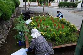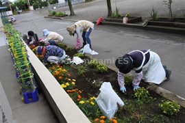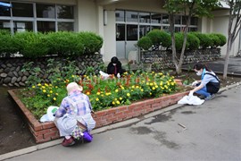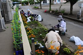 学校応援団の皆さんの御協力で,花壇とビオトープの除草作業を実施しました。