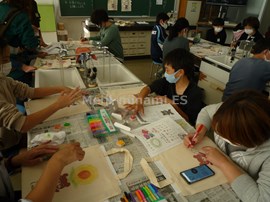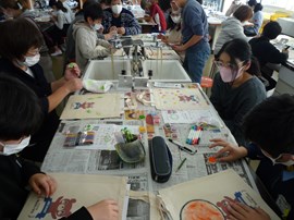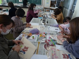 そして,5・6年生もエコバッグの絵付けを行いました。