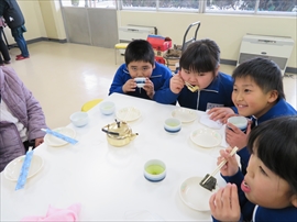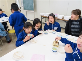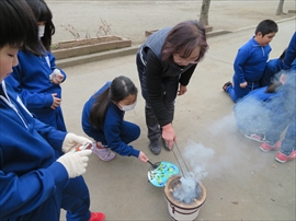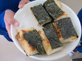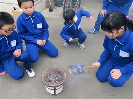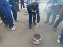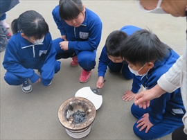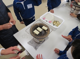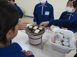 3年生が,社会科の学習で,昔の生活について学習しました。炊事の道具や選択の道具,昔の人の衣服など実物を観たり触ったり着たりしました。また,実習として,七輪を使い,火起こしをし,餅を焼きました。生き生きサロンのボランティアの方々のおかげで,いろいろな体験をすることができました。