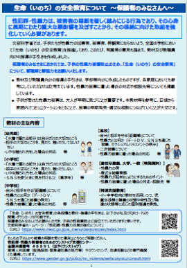 子どもたちが,性犯罪,性暴力の加害者,被害者,傍観者にならないための,生命の安全教育の推進保護者向け資料です。