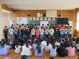 6年生を送る会及びなかよし班送る会を行いました。5年生が中心となって運営することができました。下級生の激励,6年生の応援楽しく過ごせましたが,卒業まであと19日ということで,寂しさも感じる会でした。