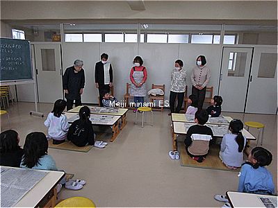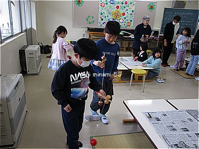 いきいきサロンの方を講師としてお招きし、1年生が昔遊び体験をしました。